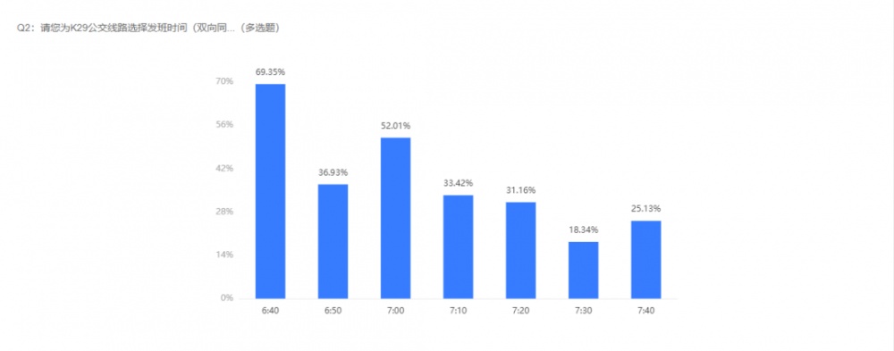 2022年11月18日,市公交集團(tuán)對(duì)《K29公交線路運(yùn)行方案》進(jìn)行了問(wèn)卷調(diào)查,截止2022年11月23日12時(shí),本次問(wèn)卷調(diào)查結(jié)束。K29公交線路開通時(shí)間擬定為2022年11月28日,營(yíng)運(yùn)方案以市民投票結(jié)果執(zhí)行。