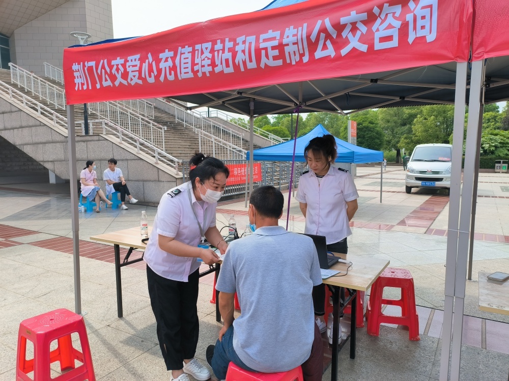 5月20日,荊門市殘疾人聯(lián)合會(huì)在荊門體育文化中心舉辦殘疾人專場(chǎng)招聘會(huì)。市公交集團(tuán)營業(yè)中心組織工作人員在活動(dòng)現(xiàn)場(chǎng)設(shè)立臨時(shí)愛心充值驛站,為前來參加活動(dòng)的殘疾朋友和其它市民朋友分別提供愛心卡咨詢、信息登記、年審、掛失和公交IC卡新辦、充值、年審、掛失等服務(wù),同時(shí),積極宣傳推廣荊門公交微信公眾號(hào),方便市民查詢公交咨詢,體驗(yàn)實(shí)時(shí)公交,讓市民告別等車焦慮,從容出行。