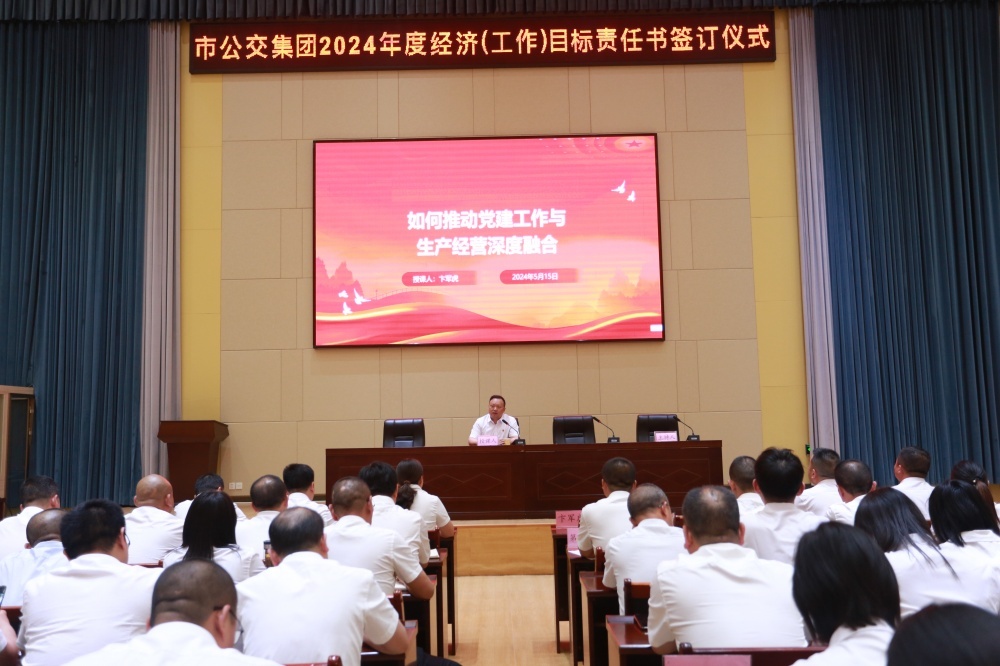 大會以2024年度經(jīng)濟(工作)目標責(zé)任書的簽訂拉開序幕。隨后集團黨委書記、董事長卞軍虎以《黨建融入生產(chǎn)經(jīng)營》為題,為集團黨員干部進行授課。